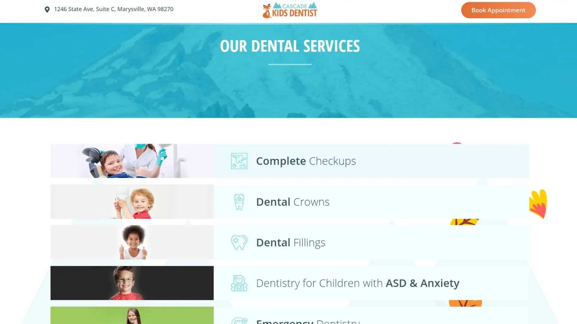 This project focused on combining strong visual design with a smooth user experience, ensuring visitors can quickly find information, book appointments, and feel confident choosing Cascade Kids Dentist for their child’s care.